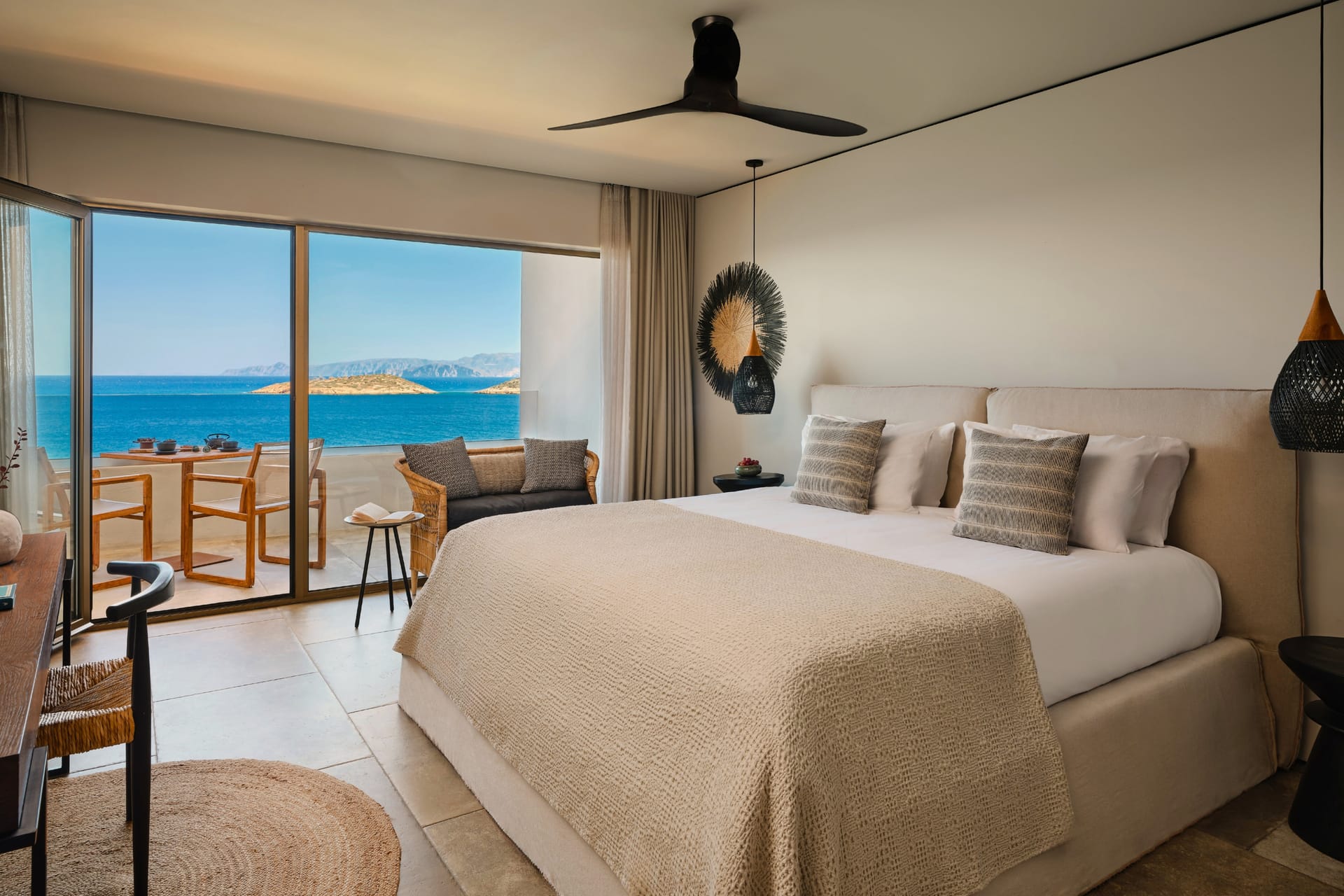 Spacious and elegantly adorned, our signature Infinity blue Rooms command panoramic vistas of the mythical and storied Mediterranean Sea. Each room is fitted with all the luxuries, comforts and amenities needed for a restful and rejuvenating stay. Slumber in our king-sized beds, take in the natural wonder of Crete from your very own private balcony. Inside, contemporary earthy tones accented by ethnic patterns instill a sense of belonging. At the touch of a button, the intuitive KNX System curates every aspect of lighting and temperature.